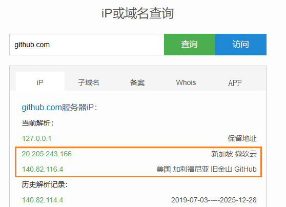 外存级,在本地手动持久化目标域名和 IP 的映射对。首先需要查询出目标域名的 IP,随便选一个查 IP 的网站即可,这里以 ip138 为例: