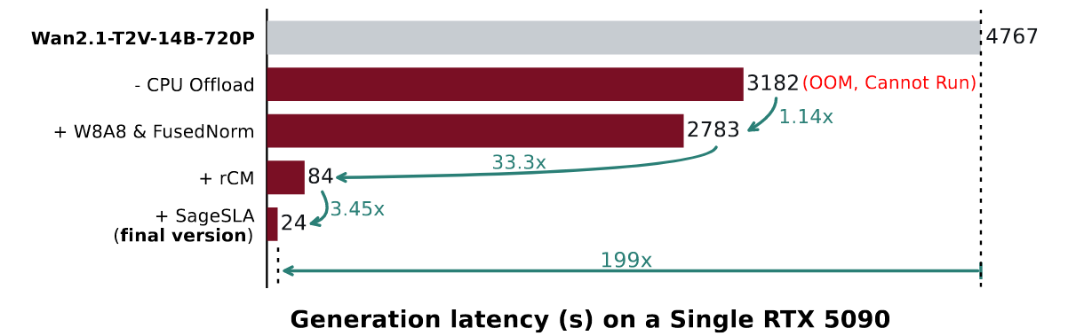 其在单卡 RTX 5090 上获得了极快的推理速度: