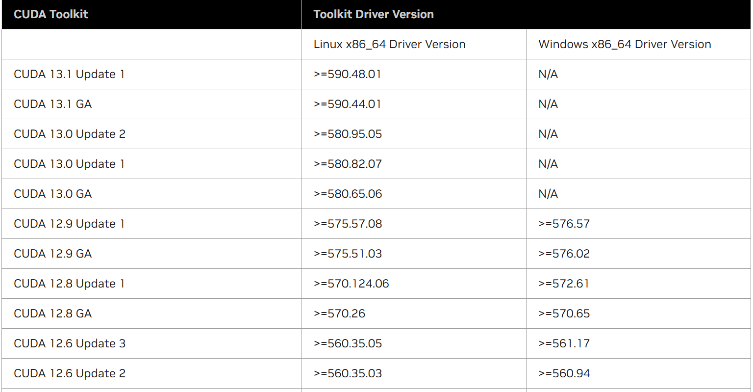 CUDA 与 NVIDIA Driver 的兼容矩阵 :