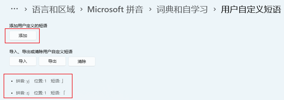 而配置打出角标的方法,其实就是自定义一个短语。我们进入「词典和自学习」一栏,自己按照习惯配置一下就可以了: